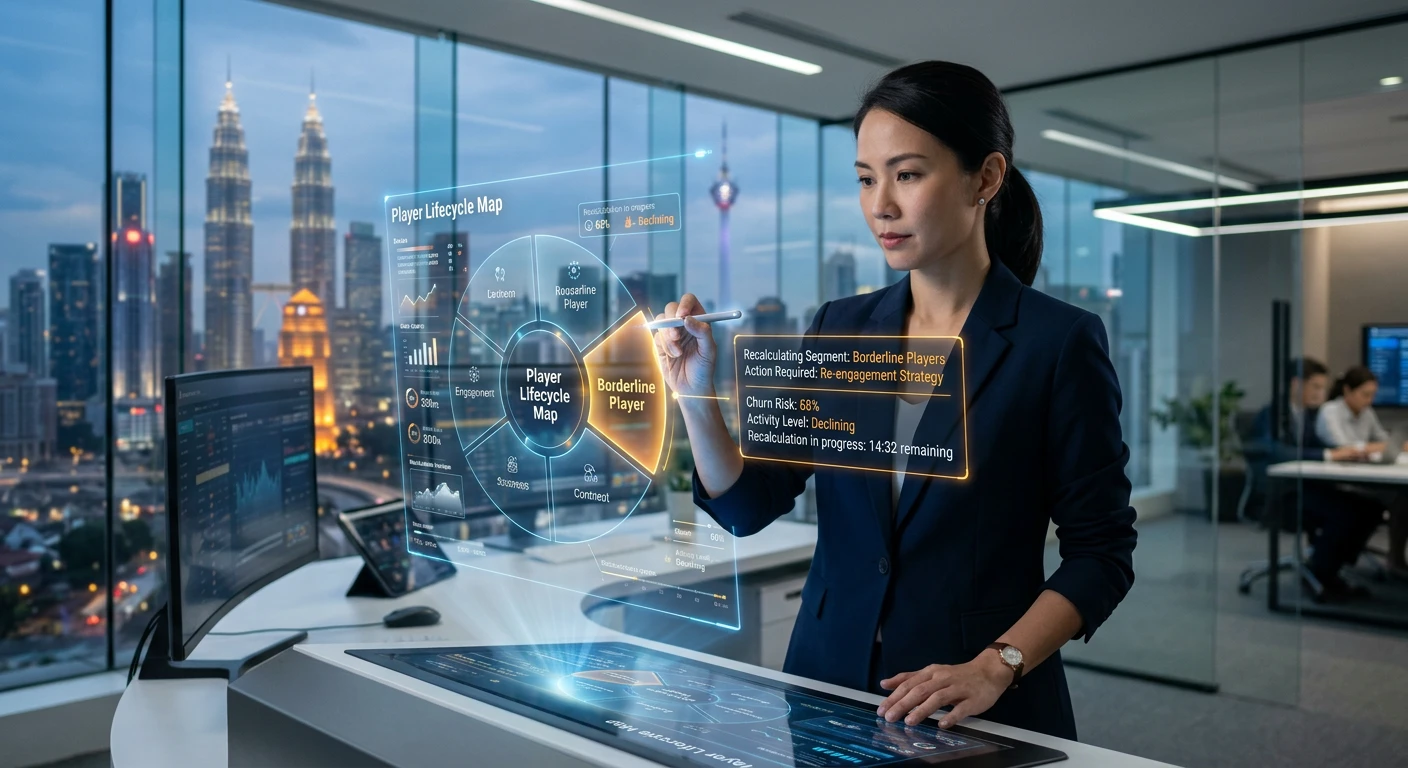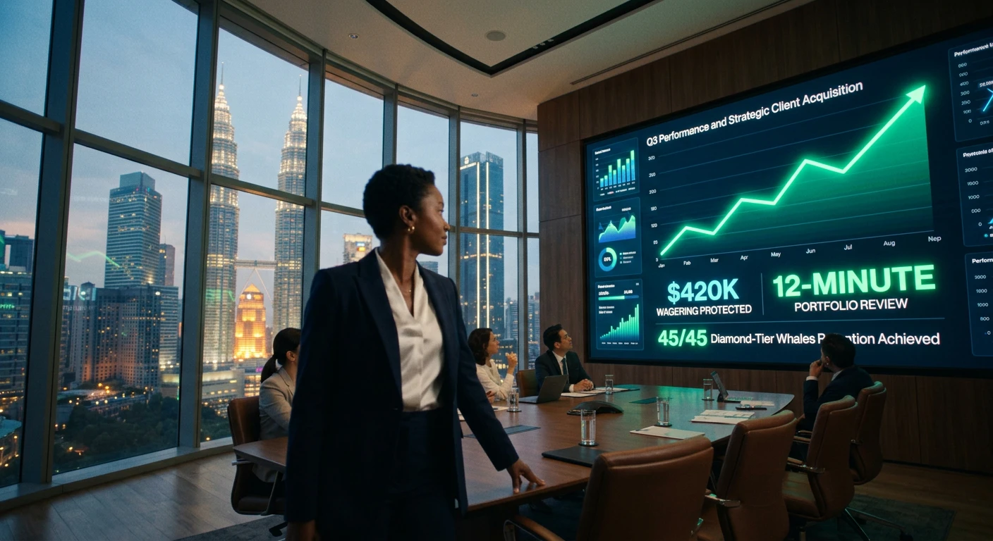 Aisha Tan manages 45 Diamond-tier players at a $7M/week premium Asian casino. See how she uses AI analytics to identify upgrade candidates, catch demotion risks, and intervene with borderline players before the month closes.